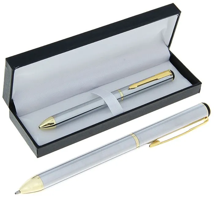 Шариковая подарочная ручка в футляре из кожзама – продемонстрирует ваш безупречный вкус и подчеркнёт статус своего обладателя. Обтекаемый металлический корпус декорирован блестящими деталями, а футляр имитирует натуральную кожу.