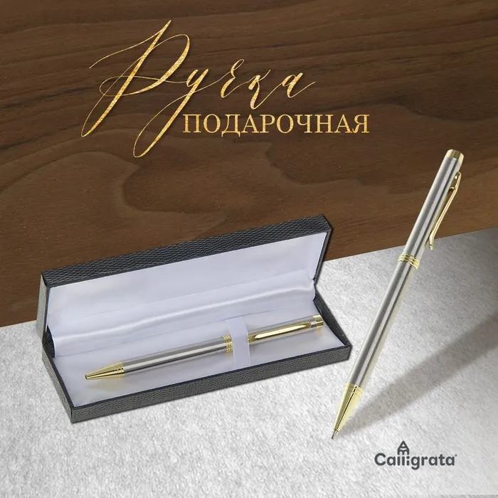 Шариковая подарочная ручка в футляре из кожзама – продемонстрирует ваш безупречный вкус и подчеркнёт статус своего обладателя. Обтекаемый металлический корпус декорирован блестящими деталями, а футляр имитирует натуральную кожу.