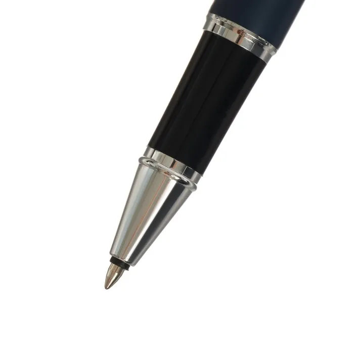 Ручка подарочная шариковая в кожзам футляре, корпус синий с серебром — Характеристики