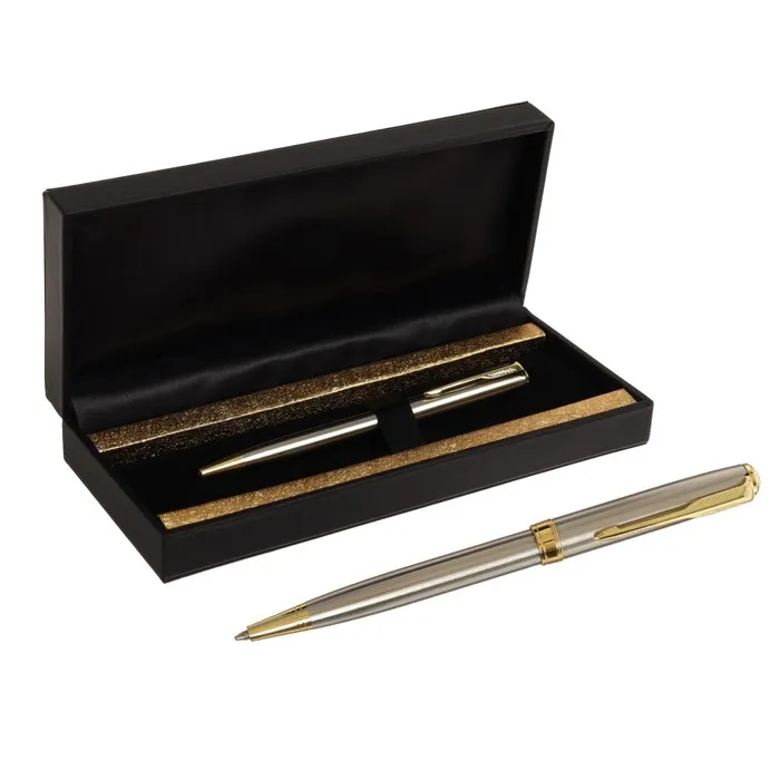 Ручка подарочная шариковая, в кожзам футляре, поворотный, ПБ S, корпус серебро/золото — Характеристики