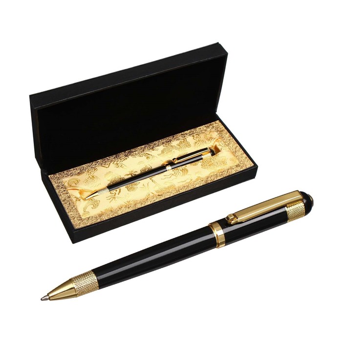 Ручка подарочная, шариковая "Вензура" в кожзам футляре, поворотная, корпус черный с золотым — Характеристики