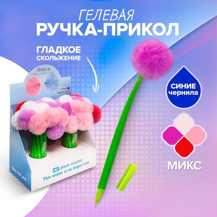 Ручка-прикол Calligrata «Зверушки», автоматическая, синий стержень, гелевая, МИКС — Характеристики