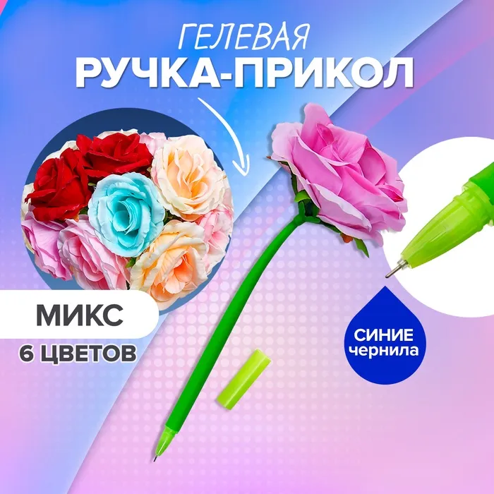 Ручка - прикол гелевая «Большая роза», штрихкод на штуке, МИКС — Характеристики