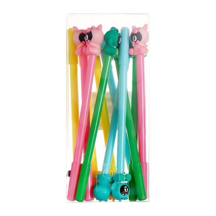 Размеры:18,7см х 0,7см х 0,7см; Дизайн: представлены в виде забавных фигурок, которые могут служить не только как пишущий инструмент, но и как забавный элемент декора; Функциональность: гелевые ручки обычно пишут гладко и ярко, что делает их удобными для письма.
