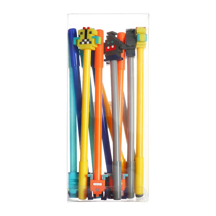 Размеры:18,7см х 0,7см х 0,7см; Дизайн: представлены в виде забавных фигурок, которые могут служить не только как пишущий инструмент, но и как забавный элемент декора; Функциональность: гелевые ручки обычно пишут гладко и ярко, что делает их удобными для письма.