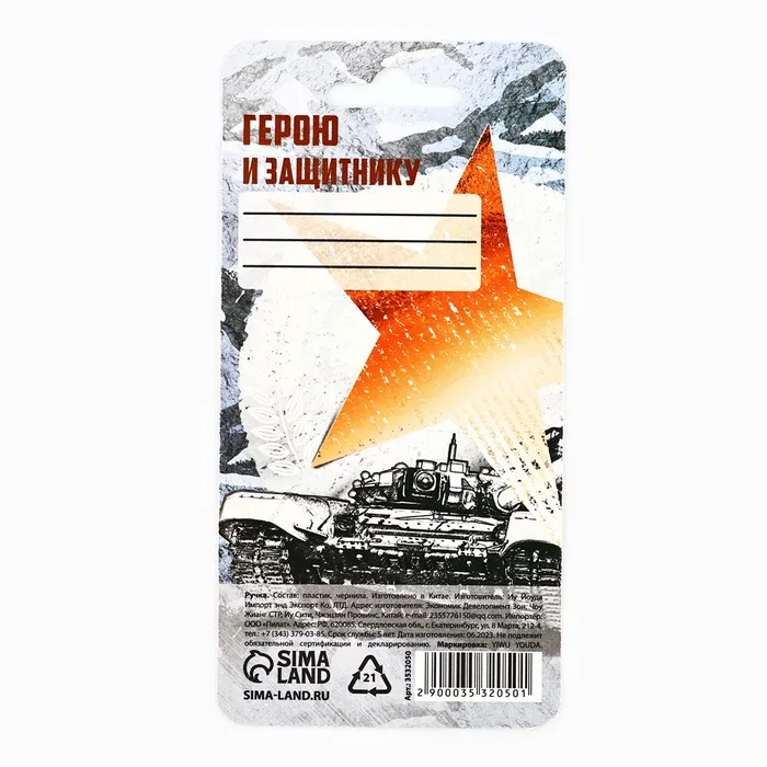 Ручка прикол, гелевая, синяя паста на подложке «Танк: 23 февраля» — Характеристики
