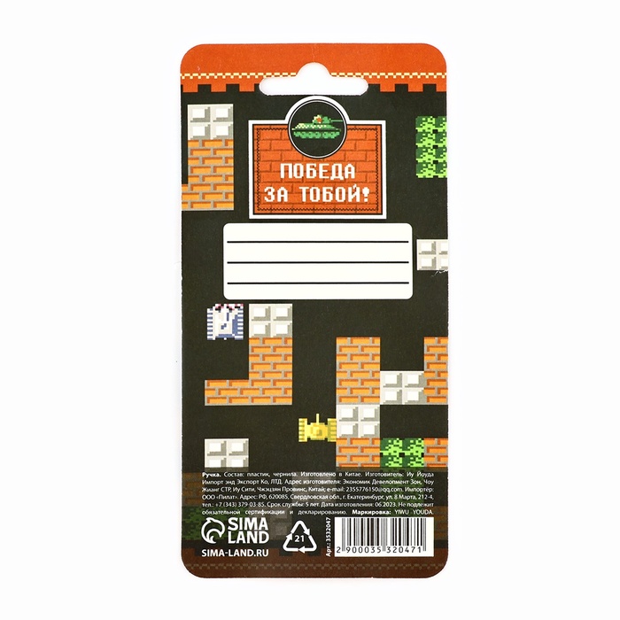 Ручка прикол, гелевая, синяя паста на подложке «Танк: В атаку!» — Характеристики