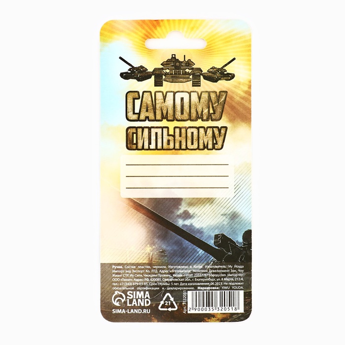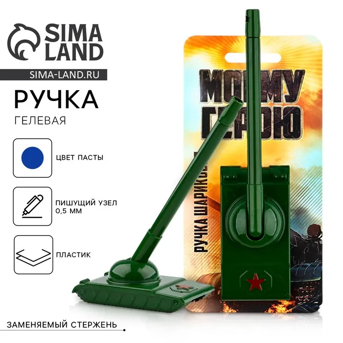 Ручка прикол, гелевая, синяя паста «Танк: Моему герою» на подложке — Характеристики