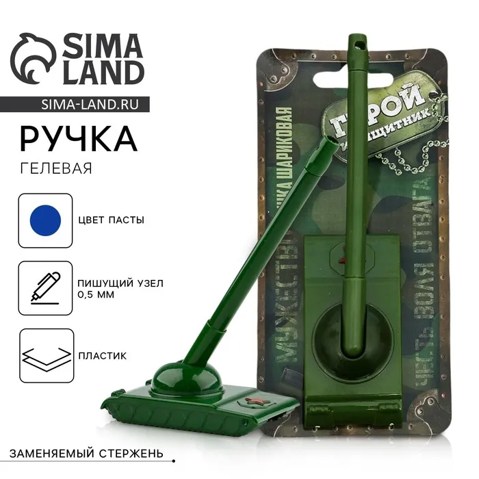 Ручка прикол, гелевая, синяя паста «Танк: Настоящий герой» на подложке — Характеристики