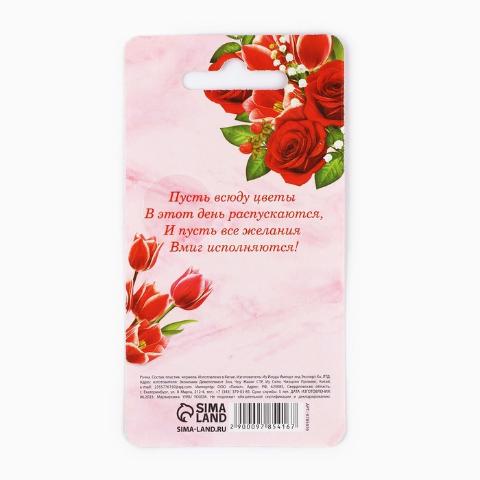 Ручка прикол шариковая помада «С праздником весны. 8 марта», на подложке — Характеристики