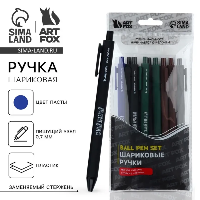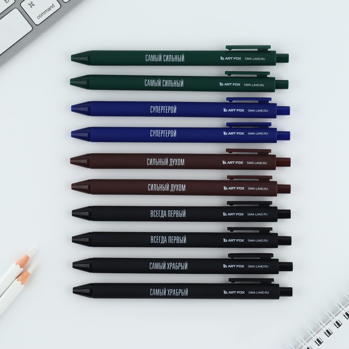 Ручка прикол шариковая синяя паста автоматическая 0,7 мм МИКС надписей «Самый сильный» — Характеристики
