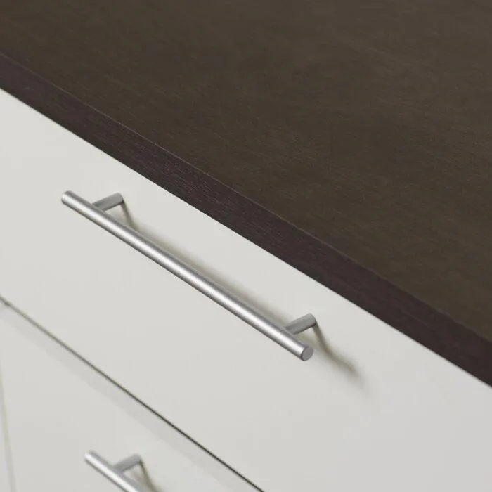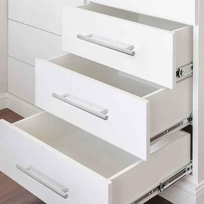 Металлическая ручка-рейлинг устанавливается на фасады ящиков тумб или комодов.