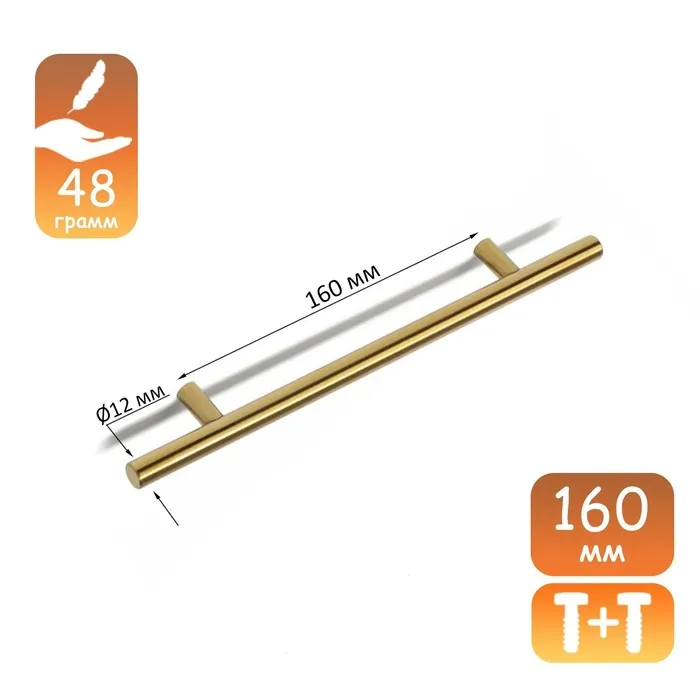 Ручка-рейлинг CAPPIO FRIDA, нержавеющая сталь, d=12 мм, м/о 160 мм, цвет золото — Характеристики