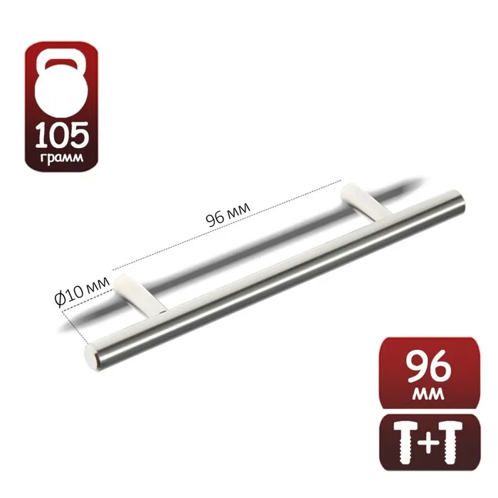 Ручка-рейлинг, d=10 мм, м/о 96 мм, цвет сатиновый никель — Характеристики