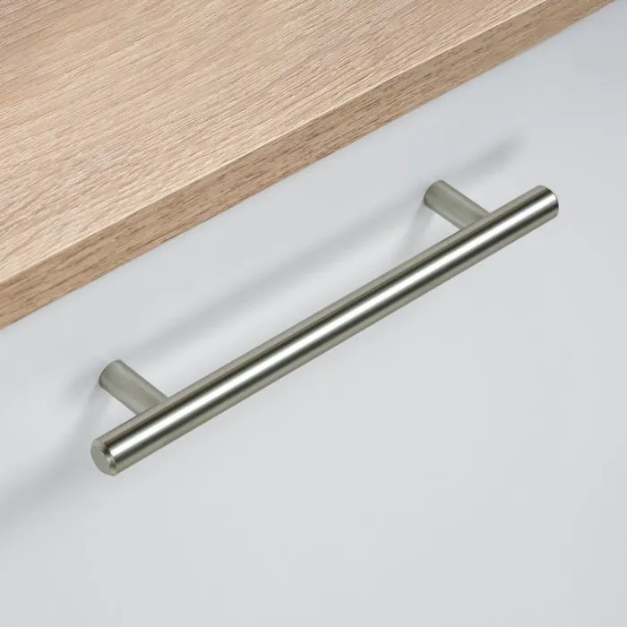 Металлическая ручка-рейлинг устанавливается на фасады ящиков тумб или комодов.