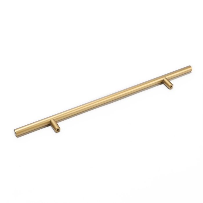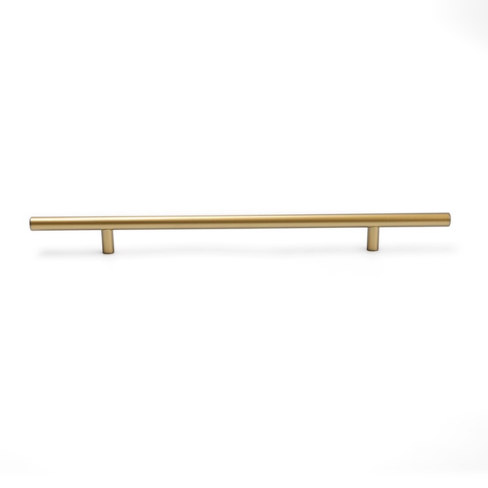 Рейлинговая ручка ТУНДРА, облегченная, золото, 350 мм — это удлиненная круглая ручка из нержавеющей стали для распашных фасадов. Золотое покрытие создает акцентный элемент на мебели.
