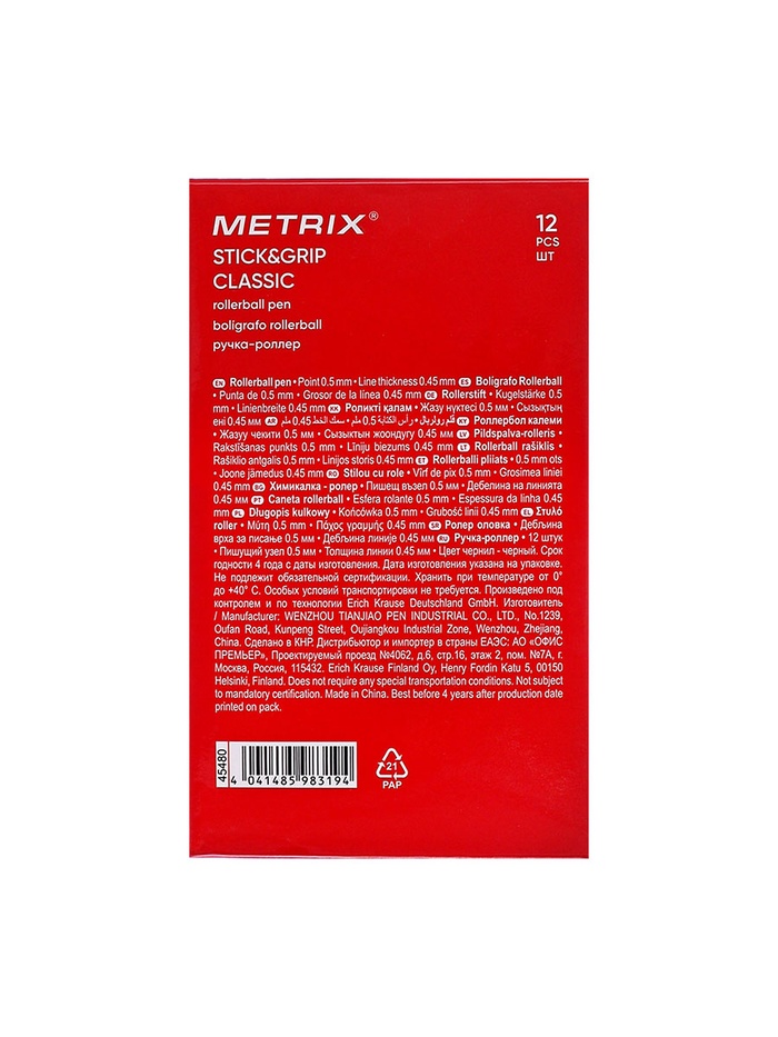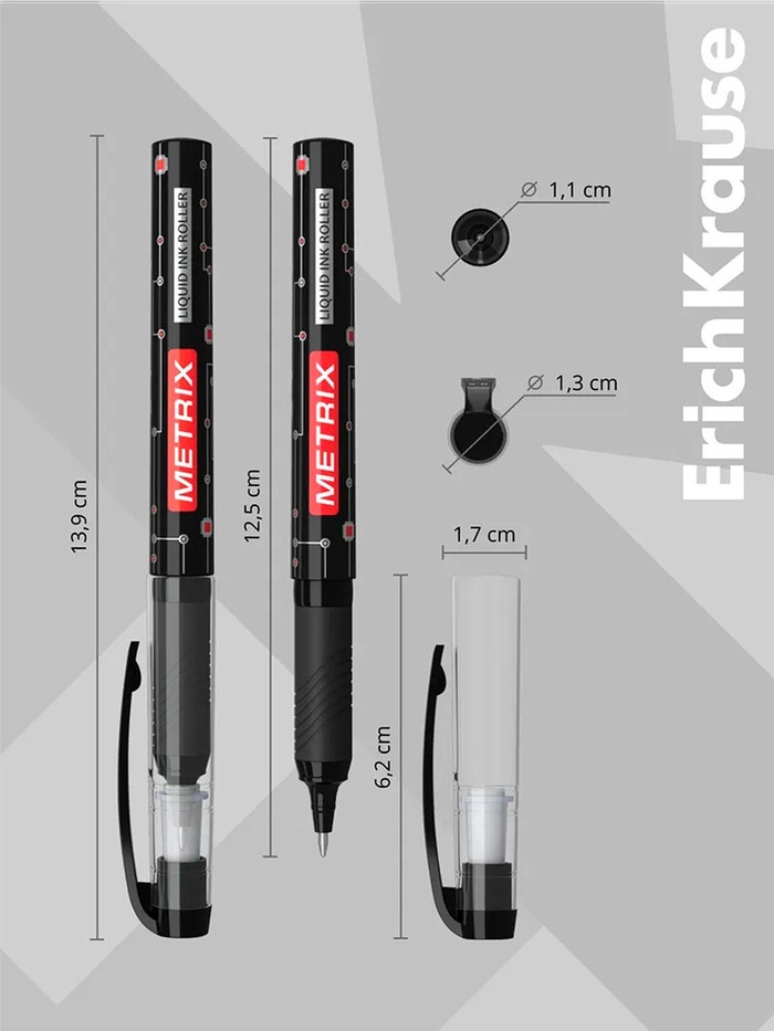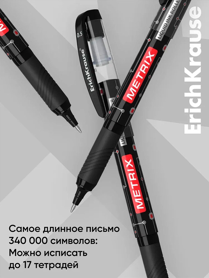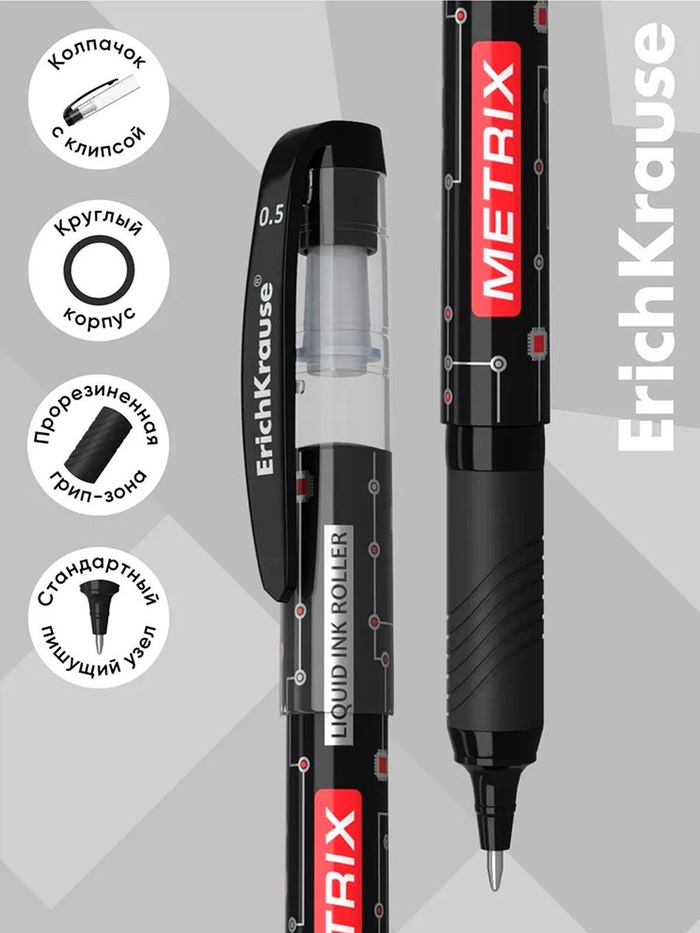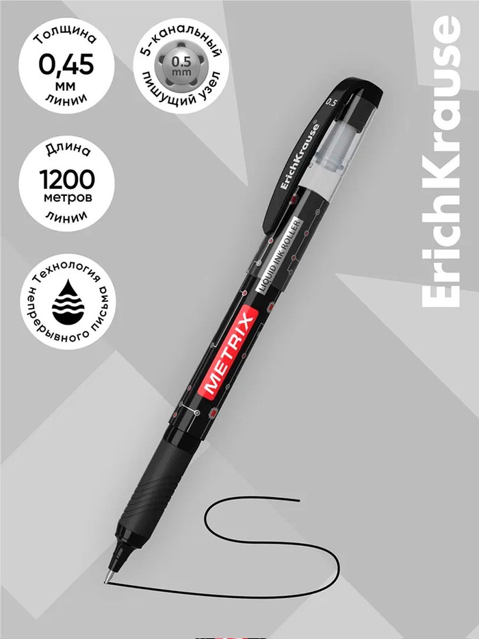 Ручка - роллер Erich Krause METRIX, узел 0.5, чернила чёрные, длина письма 1200 метров — Характеристики