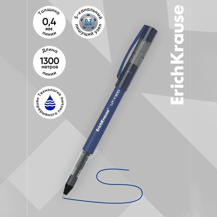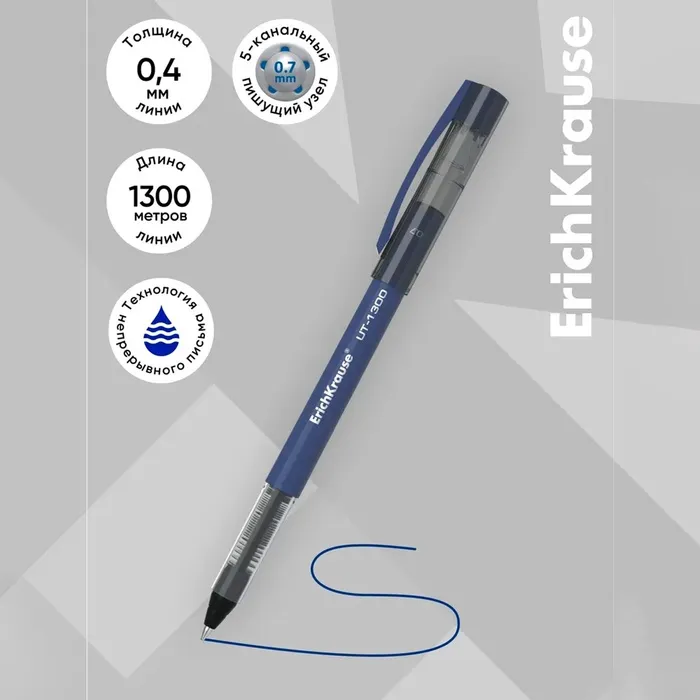 Ручка - роллер ErichKrause «UT-1300», узел 0.7 мм, чернила синие, мягкое, тонкое и чистое письмо — Характеристики