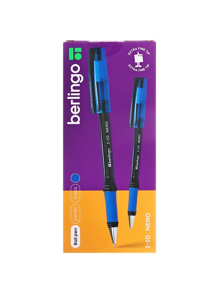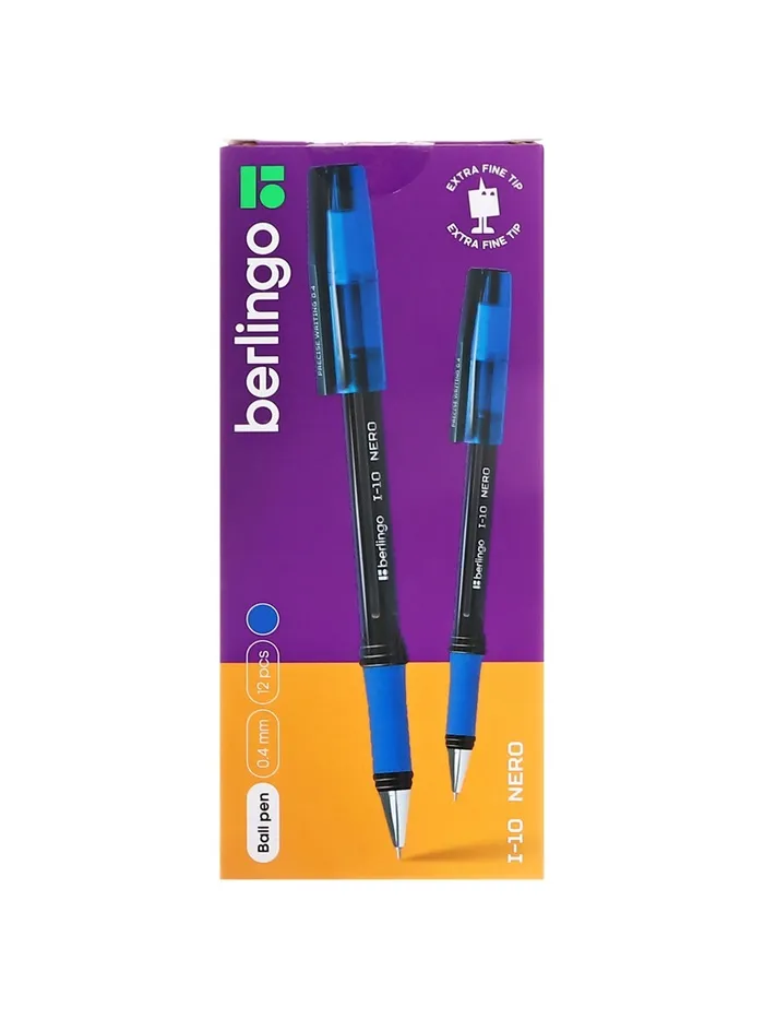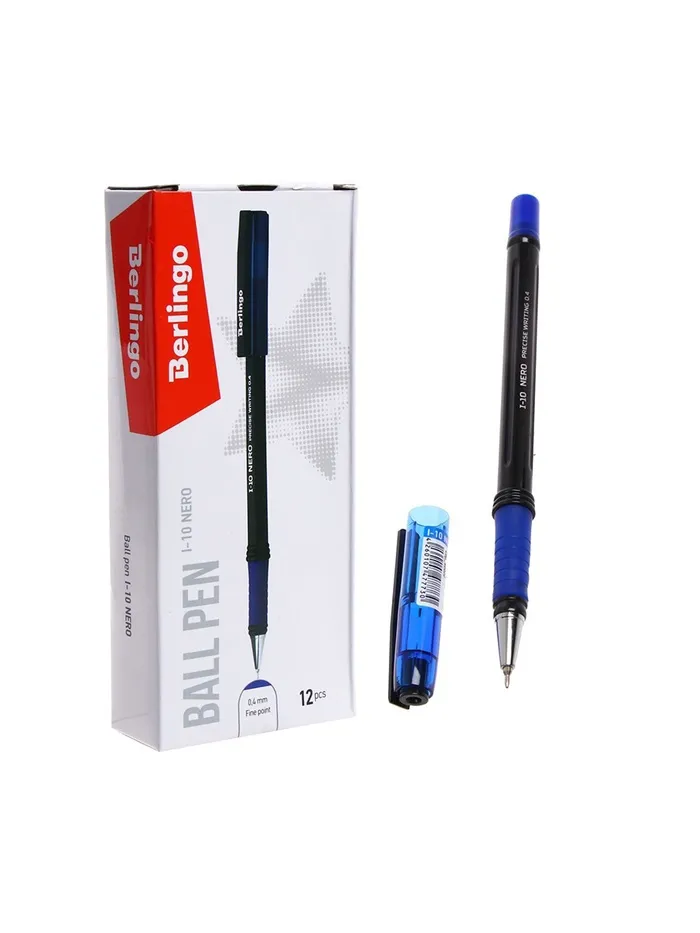 Стильная шариковая ручка Berlingo I-10 Nerо с чёрным корпусом и необычным тонированным пластиковым клипом, который соответствует цвету чернил – это надёжный помощник для учёбы или работы. Мягкий резиновый грип в зоне захвата способствует дополнительному удобству при письме. Качественные чернила на масляной основе обеспечивают четкое и ровное письмо. Цвет чернил – синий. Диаметр пишущего узла составляет 0,4 мм, благодаря чему ручка идеально подходит для быстрого стиля письма. Толщина линии письма 0,3 мм, а длина линии письма – 1000 м. Цвет чернил: синий, Толщина линии письма: 0,3 мм, Длина письма: 1000 м, Цвет корпуса: чёрный.