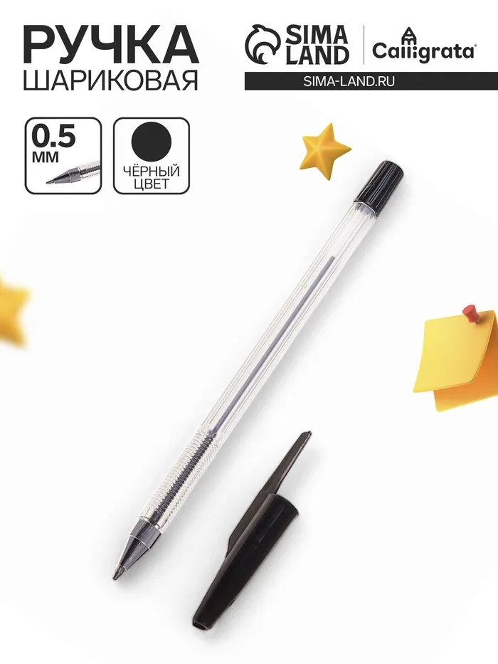 Ручка шариковая 0.5 мм, стержень чёрный, корпус прозрачный, колпачок чёрный, рифленый держатель — Характеристики