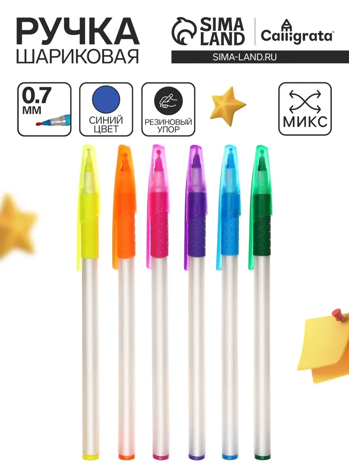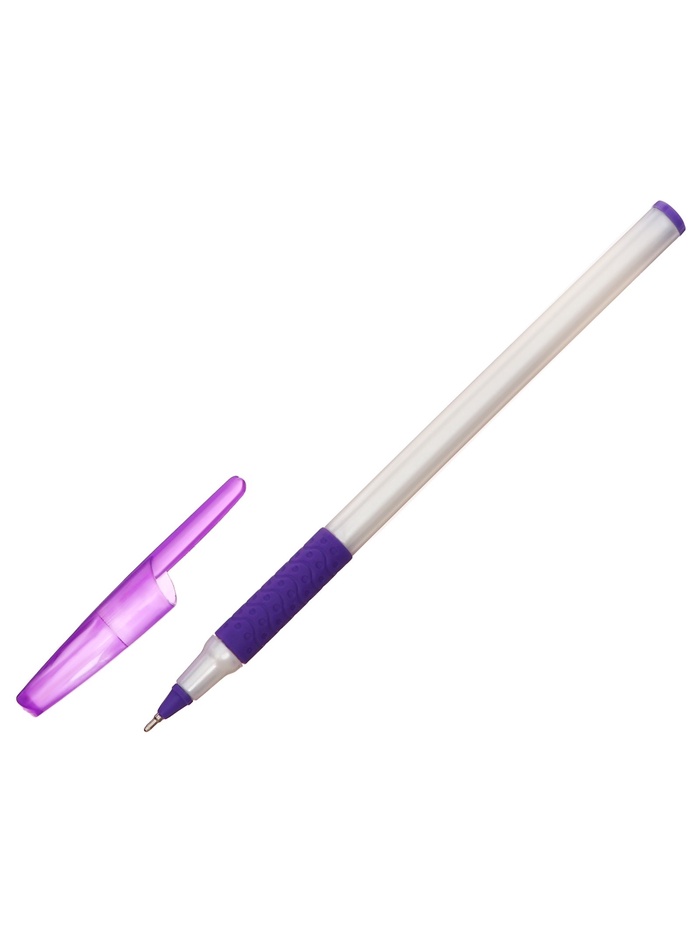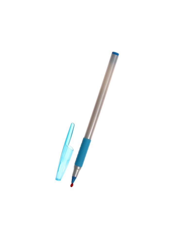 Ручка шариковая 0.7 мм, стержень синий, корпус белый с резиновым держателем и колпачком, МИКС — Характеристики
