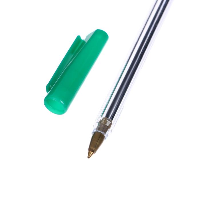 Ручка шариковая 0,7 мм, стержень зелёный, корпус прозрачный с зеленым колпачком
