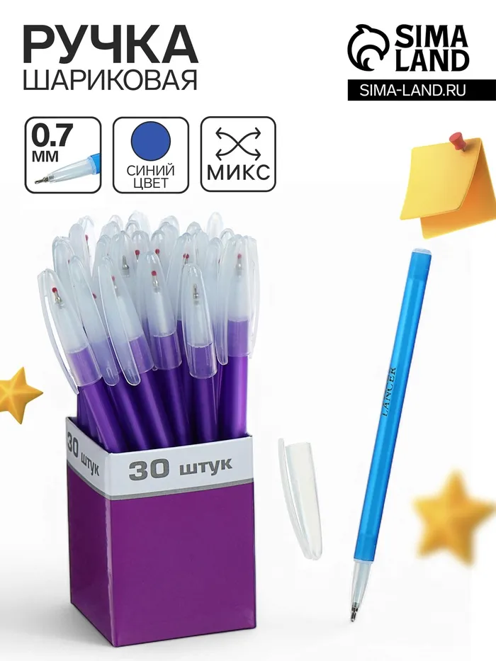 Ручка шариковая 0.7 мм, в дисплее, синяя, корпус цветной МИКС (штрихкод на штуке) — Характеристики