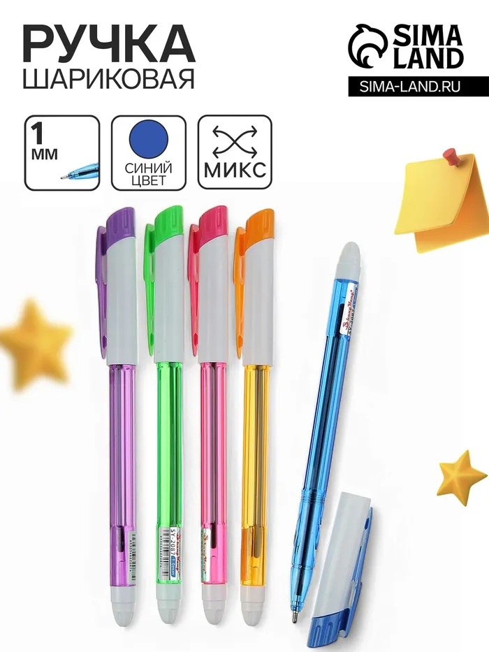 Ручка шариковая 1.0 мм, стержень синий, корпус тонированный с цветным колпачком, МИКС — Характеристики