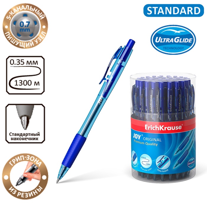 Ручка шариковая автомат ErichKrause JOY Original, комфортное письмо, синяя — Характеристики