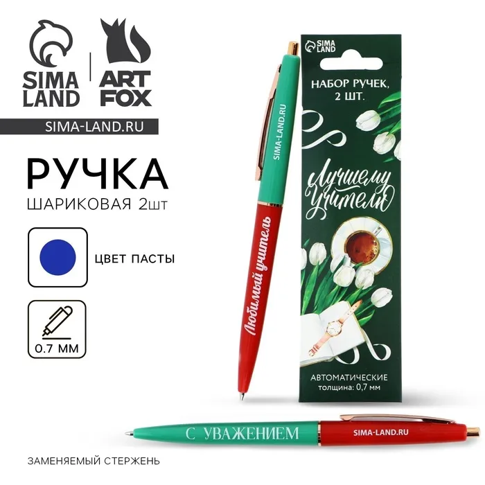 Ручка шариковая, автоматическая, 2 шт., пластик, синяя паста «Лучшему Учителю» — Характеристики