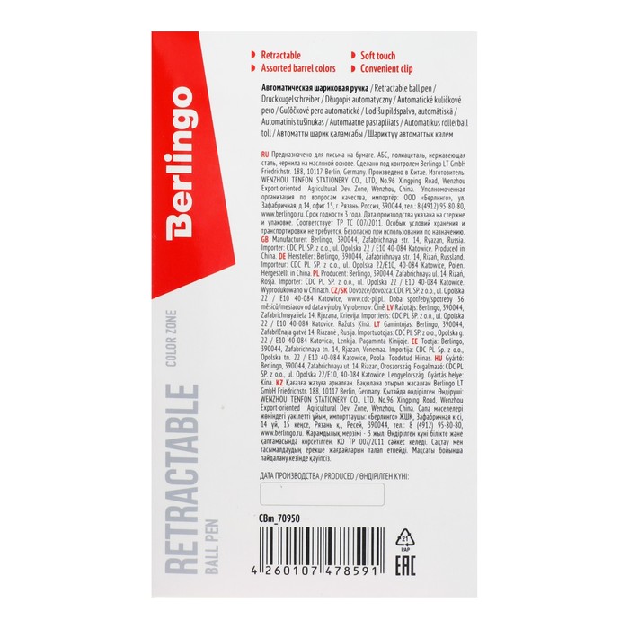 Эффектная шариковая автоматическая ручка с клипом является частью одноименной яркой серии. Прорезиненное яркое покрытие черного корпуса и утолщение в зоне захвата ручки обеспечивают высокий уровень комфорта при ее использовании. Диаметр пишущего узла составляет 0,7 мм, толщина линии письма – 0,5 мм, а длина письма – 600 м. Уникальная запатентованная технология Smart Ink обеспечивает лёгкое и приятное письмо, за счёт использования чернил пониженной вязкости и инновационных материалов шарика, пишущего узла и его специальной конструкции. Инновационные компоненты, используемые для изготовления шарика пишущего узла (карбид вольфрама), обеспечивают долговечность и стабильность качества письма. Технология: Smart Ink,Цвет чернил: синяя,Толщина линии письма: 0,5 мм,Длина письма: 600 м,Цвет корпуса: микс из 5-ти цветов.