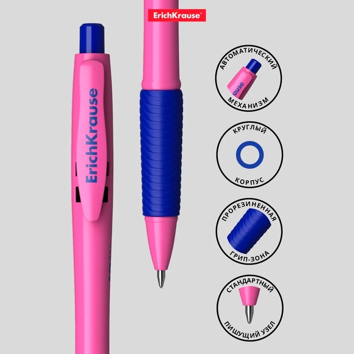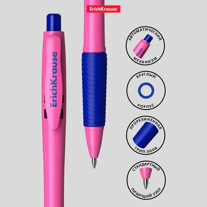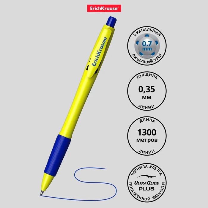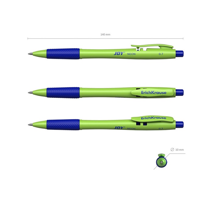 Ручка шариковая автоматическая ErichKrause JOY Neon, узел 0.7 мм, чернила синие, резиновый держатель, супермягкое письмо, длина линии письма 1300 метров, МИКС — Характеристики