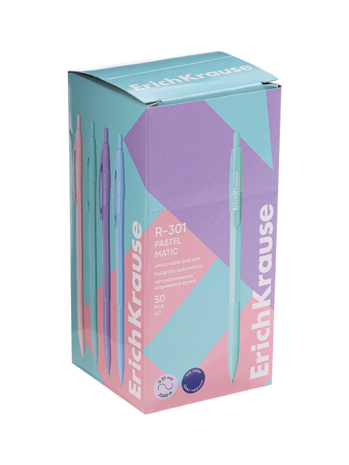 Ручка шариковая автоматическая, ErichKrause R-301 Matic Pastel, 0.7 мм, синяя — Характеристики