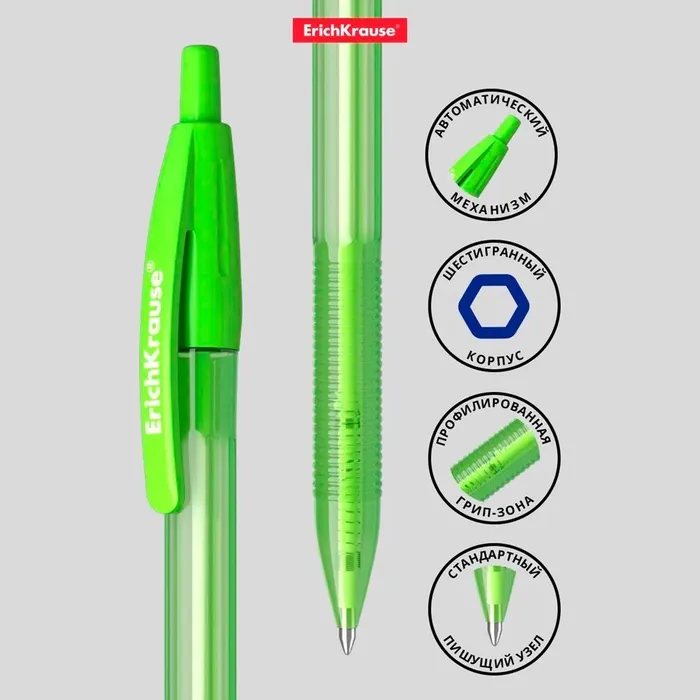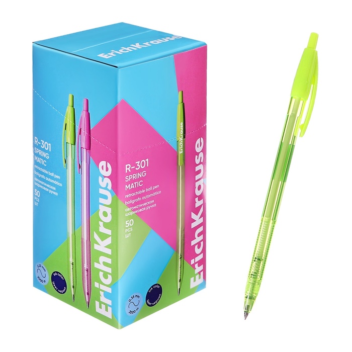 Ручка шариковая автоматическая ErichKrause R-301 Spring Matic, узел 0.7 мм, чернила синие, длина линии письма 2000 метров, МИКС — Характеристики