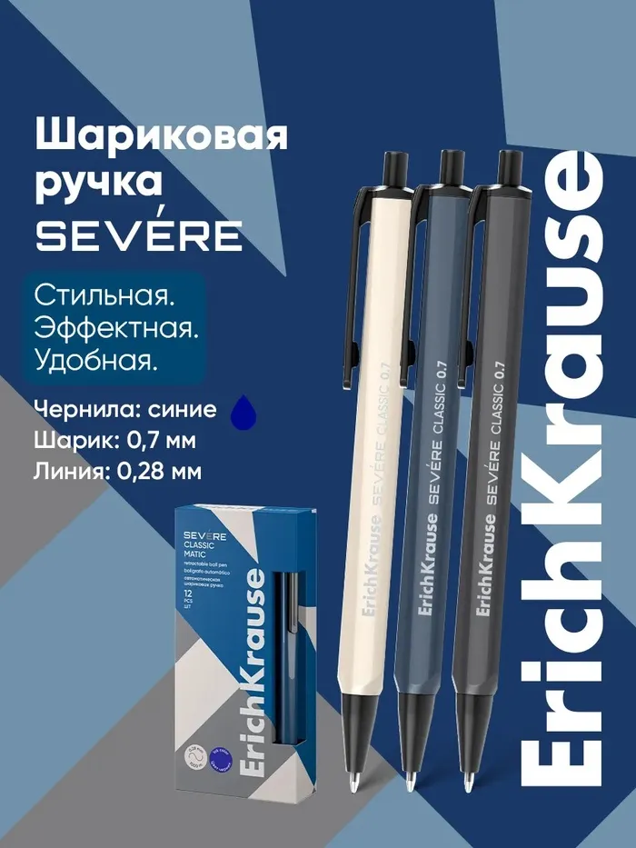Элегантность и функциональность в одном инструменте! Шариковая автоматическая ручка ErichKrause «Severe Matic Classic» – это идеальный выбор для тех, кто ценит качество и комфорт письма ежедневно. Эта ручка создавалась для правшей с акцентом на каждый деталями.