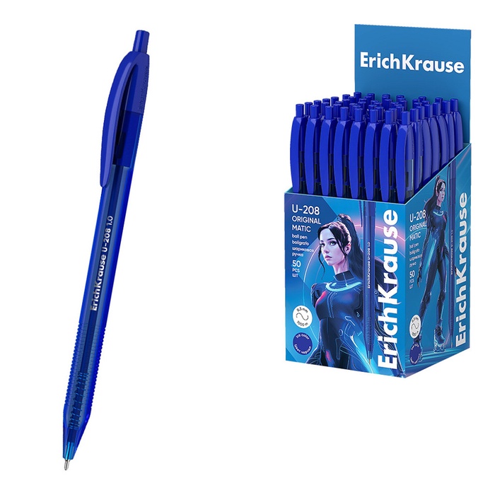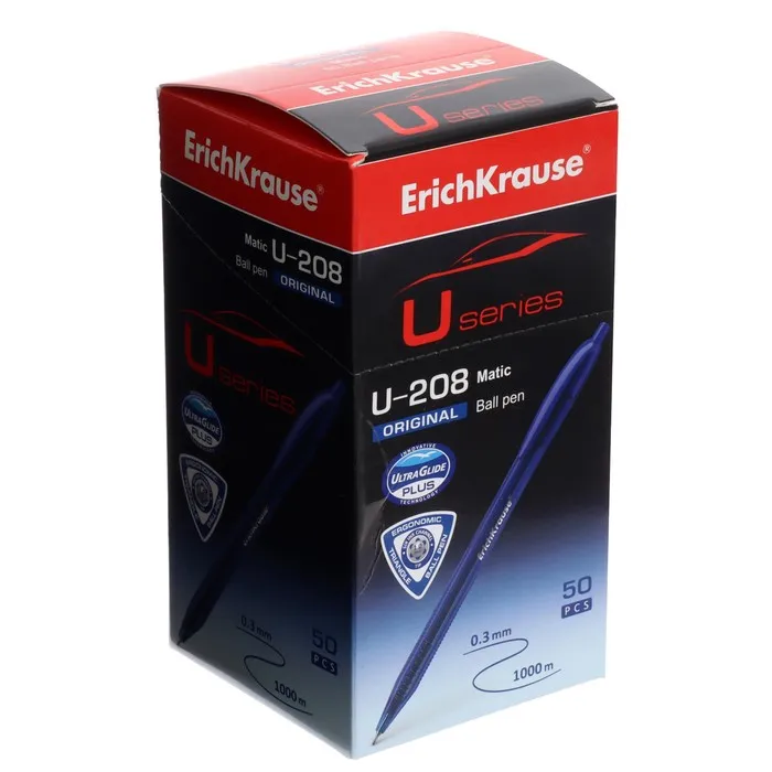 Ручка шариковая автоматическая ErichKrause U-208 Original Matic, игольчатый узел 1,0 мм, чернила синие, ультра-мягкое письмо — Характеристики