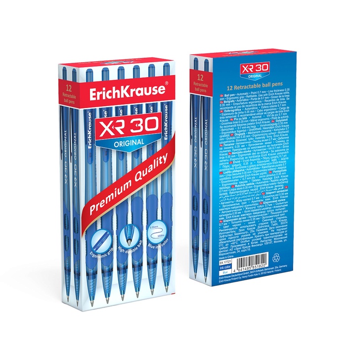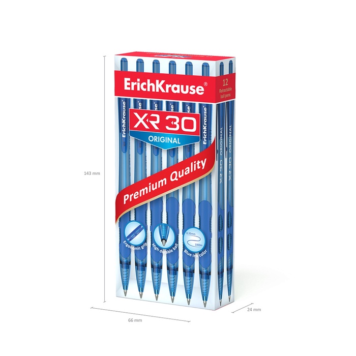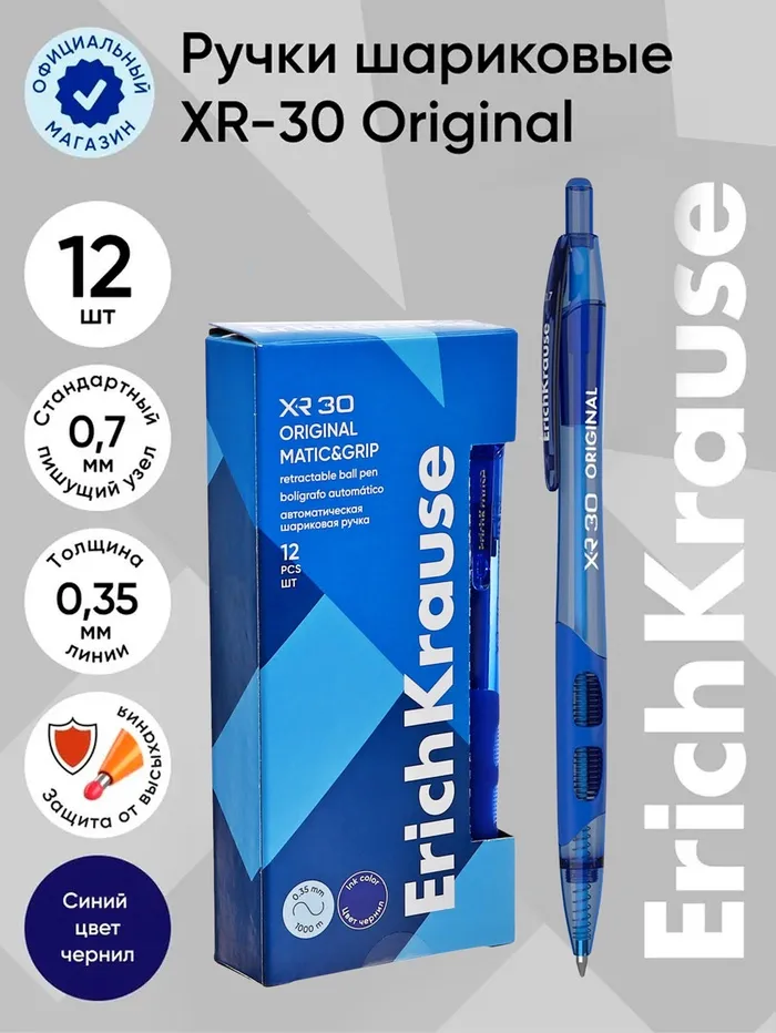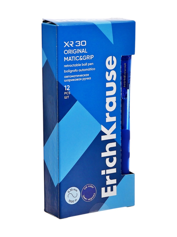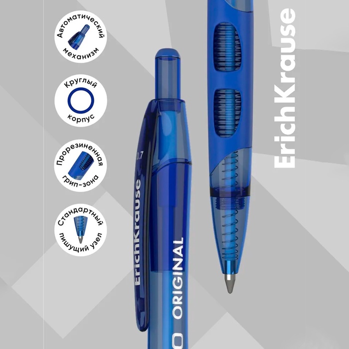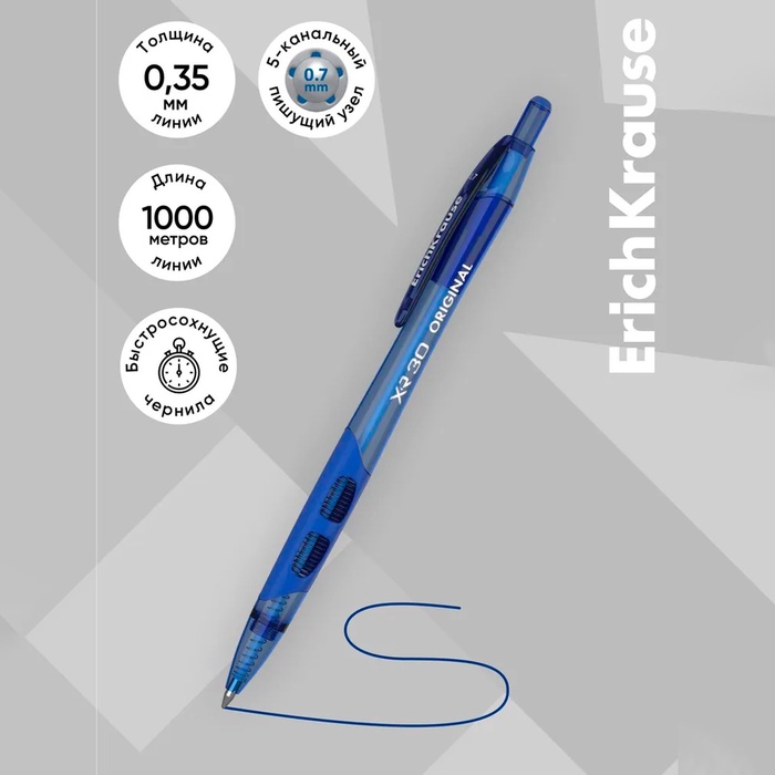 Ручка шариковая автоматическая ErichKrause XR-30, узел 0.7 мм, чернила синие, резиновый держатель, длина линии письма 1000 метров — Характеристики