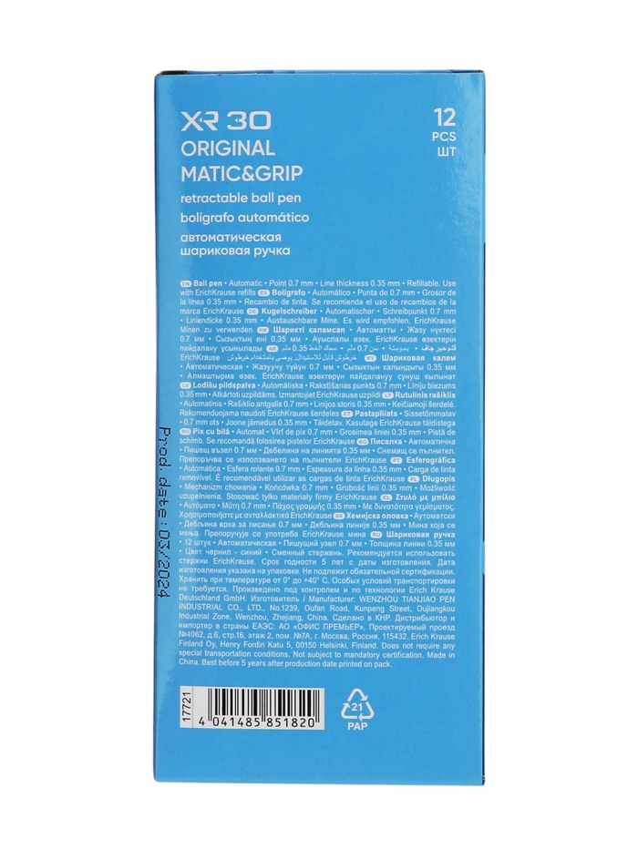 Автоматическая шариковая ручка Matic&Grip со стандартным типом пишущего узла и заменяемым стержнем. Цвет корпуса, грип-зоны и клипа соответствует цвету чернил. 5-канальный пишущий узел в сочетании с быстросохнущими чернилами обеспечивает мягкое и быстрое письмо. Модель XR-30 Matic&Grip Original 0.7 стала одним из бестселлеров в ассортименте автоматических ручек ErichKrause.
