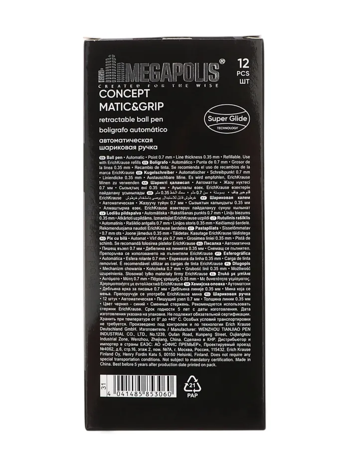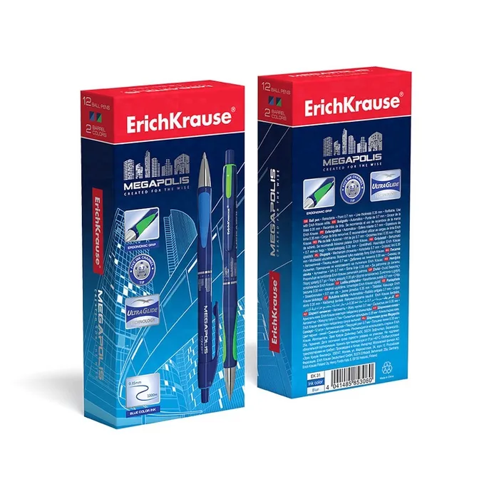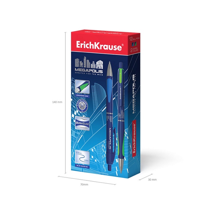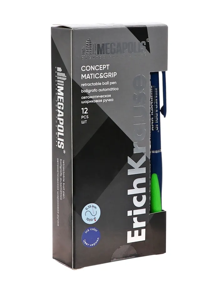 Автоматическая шариковая ручка Matic&Grip с металлизированными элементами, стандартным типом пишущего узла, заменяемым стержнем и уникальной технологией Ultra Glide. 5-канальный пишущий узел в сочетании с чернилами пониженной вязкости обеспечивает мягкое и быстрое письмо без усилий. Модель MEGAPOLIS® имеет узнаваемую запатентованную форму, обладает великолепной эргономикой и стала абсолютным бестселлером в ассортименте автоматических шариковых ручек ErichKrause более чем в пятидесяти странах мира.