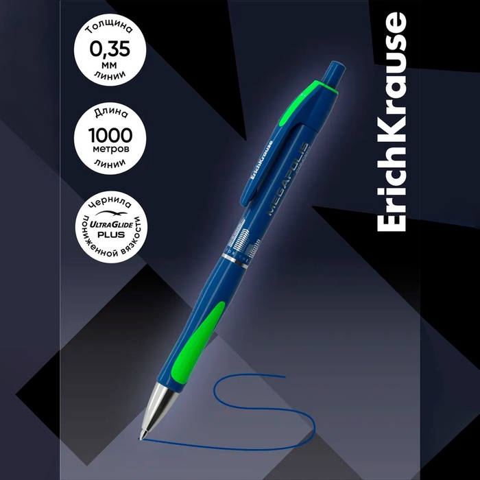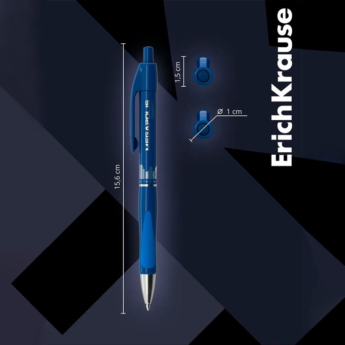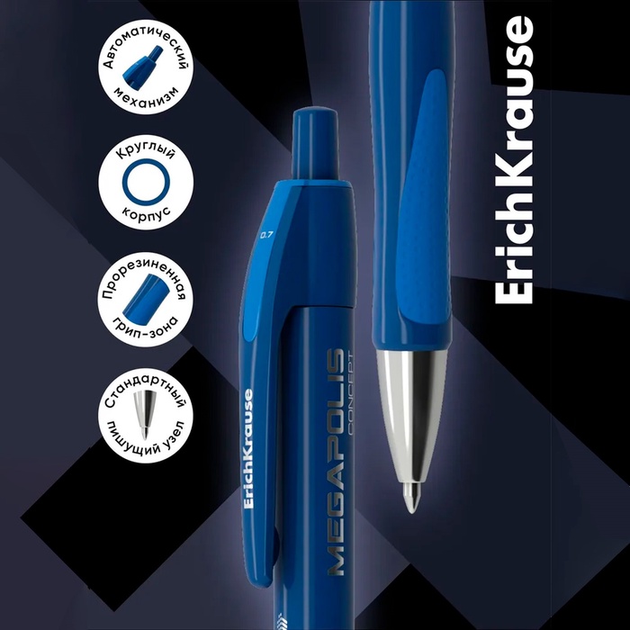 Ручка шариковая автоматическая Megapolis Concept, резиновый упор, узел 0.7 мм, чернила синие, длина линии письма 1000 метров — Характеристики