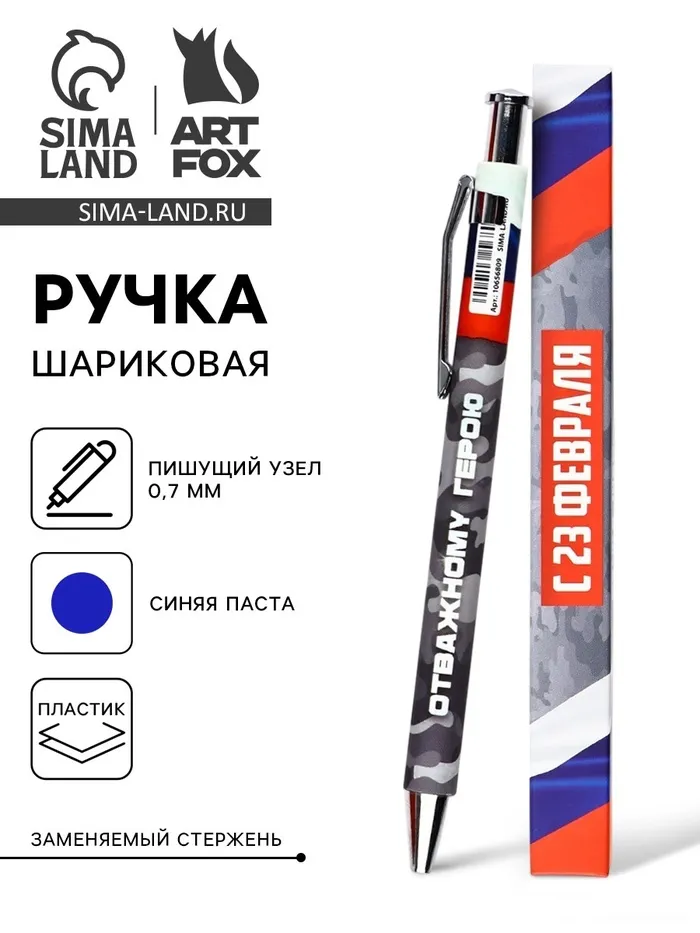 Ручка шариковая, автоматическая, пластик, 0.7 мм, синяя паста «С 23 февраля» — Характеристики