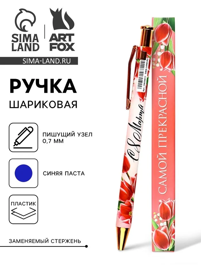 Ручка шариковая, автоматическая, пластик, 0.7 мм, синяя паста «Самой прекрасной, с 8 марта» — Характеристики