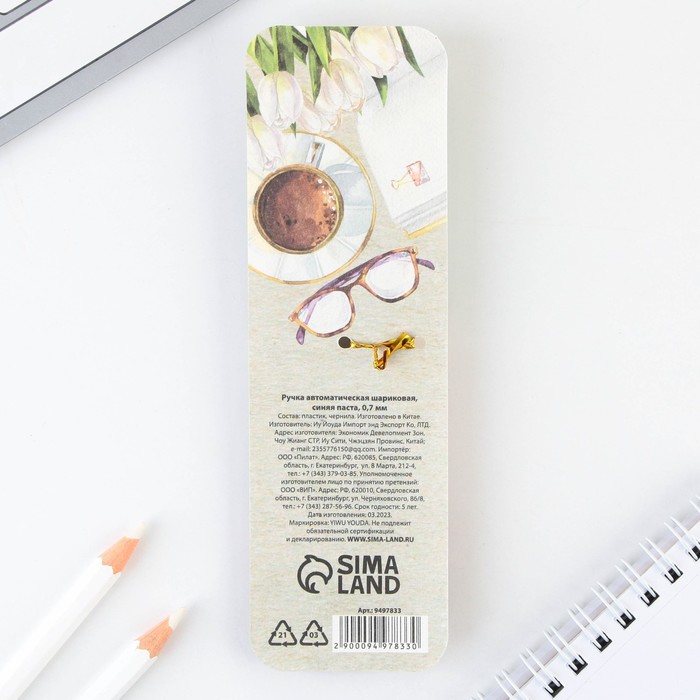 Ручка шариковая автоматическая пластик, синяя паста, 0.7 мм «Любимый учитель» — Характеристики