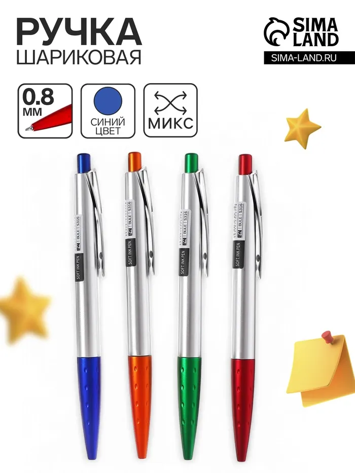 Ручка шариковая, автоматическая, синий стержень, узел 0.8 мм, на масляной основе, МИКС — Характеристики