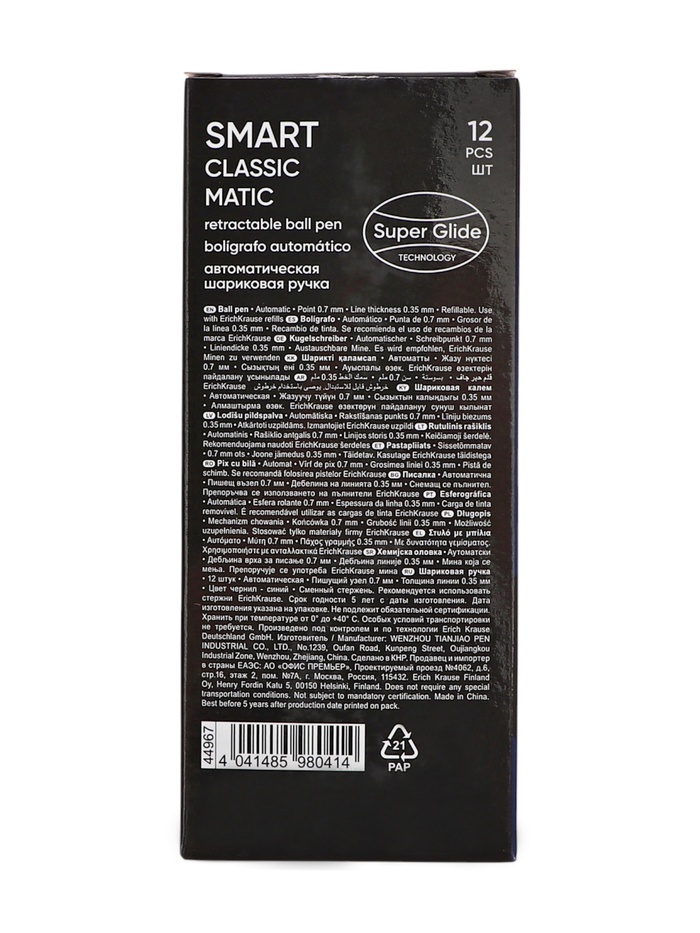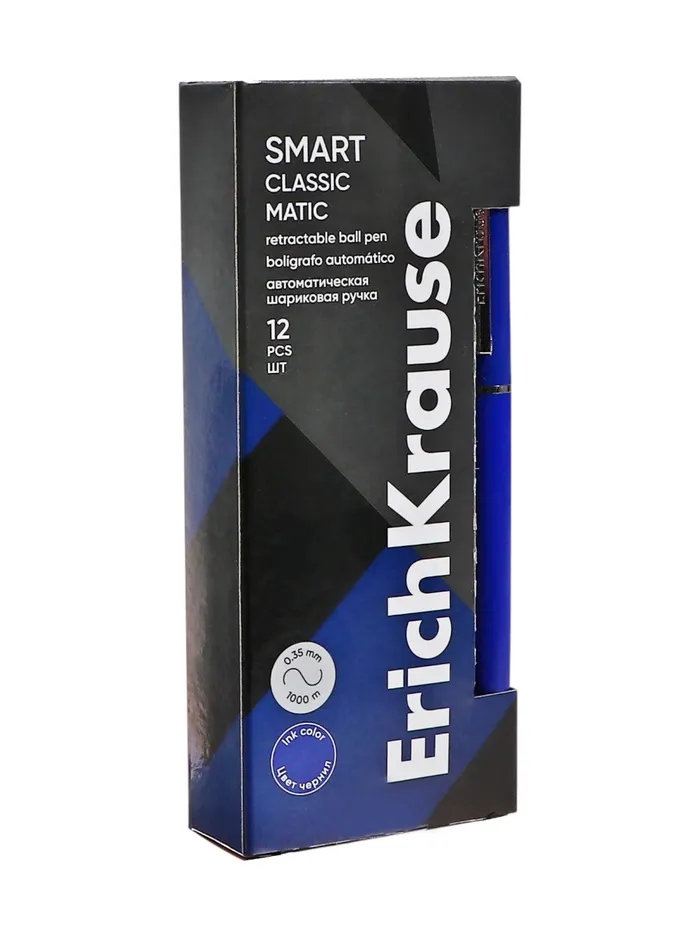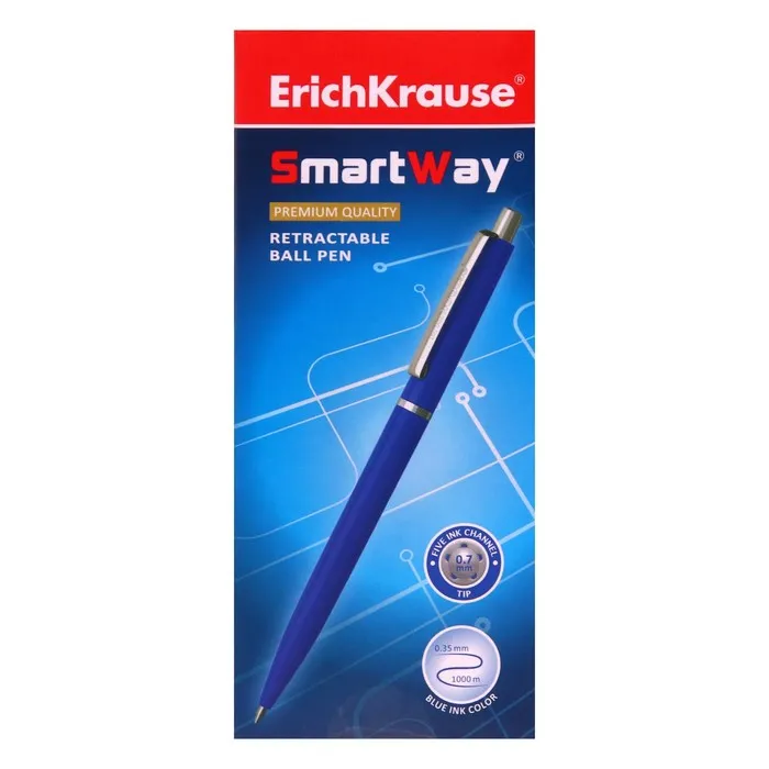 Классическая автоматическая шариковая ручка с металлическим клипом, стандартным типом пишущего узла и заменяемым стержнем. Ручка имеет непрозрачный, глянцевый круглый корпус синего цвета. 5-канальный пишущий узел с диаметром шарика 0.7 мм в сочетании с быстросохнущими чернилами обеспечивает мягкое и быстрое письмо. Длина непрерывной линии составляет 1000 м при толщине 0.35 мм, что является высоким показателем в своей категории. Новинка 2019 года ручка Smart® имеет строгую, классическую форму и рекомендована офисным сотрудникам в качестве надежной ручки для повседневного использования.