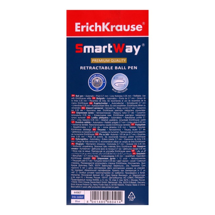 Ручка шариковая автоматическая Smart, узел 0.7 мм, под логотип, чернила синие, длина линии письма 1000 метров — Характеристики