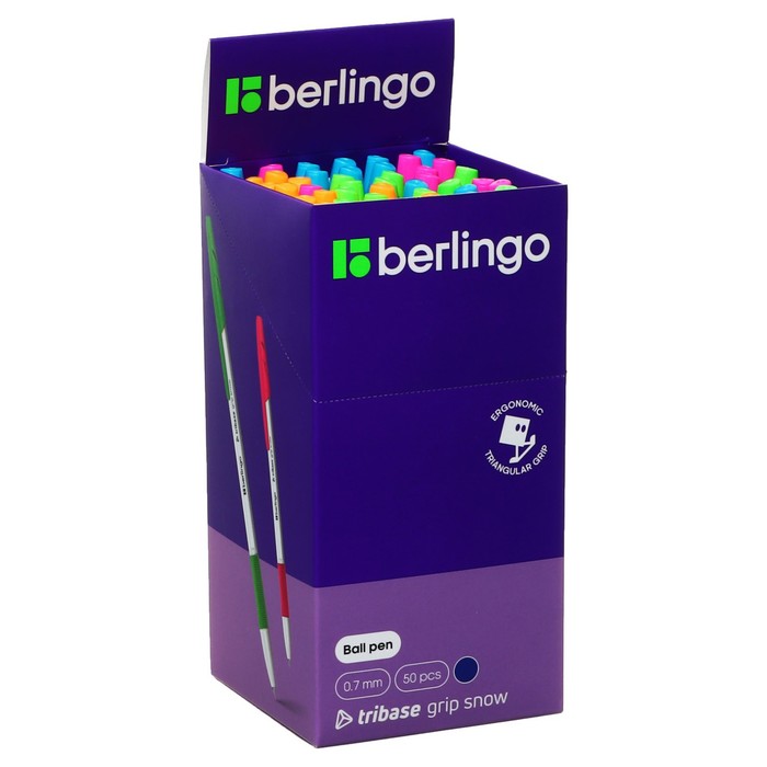 Ручка шариковая Berlingo Tribase grip show, стержень синий 0.7, грип, синяя, МИКС — Характеристики
