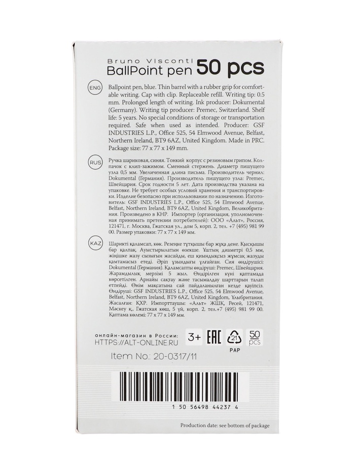 Ручка шариковая BrunoVisconti BasicWrite.Moon, 0.5мм, стерж/син — Характеристики