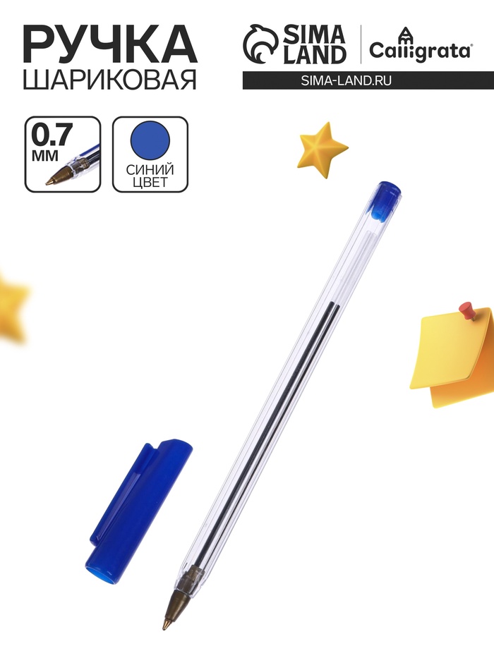 Ручка шариковая Calligrata, синий стержень, узел 0.7 мм, прозрачный корпус с синим колпачком — Характеристики