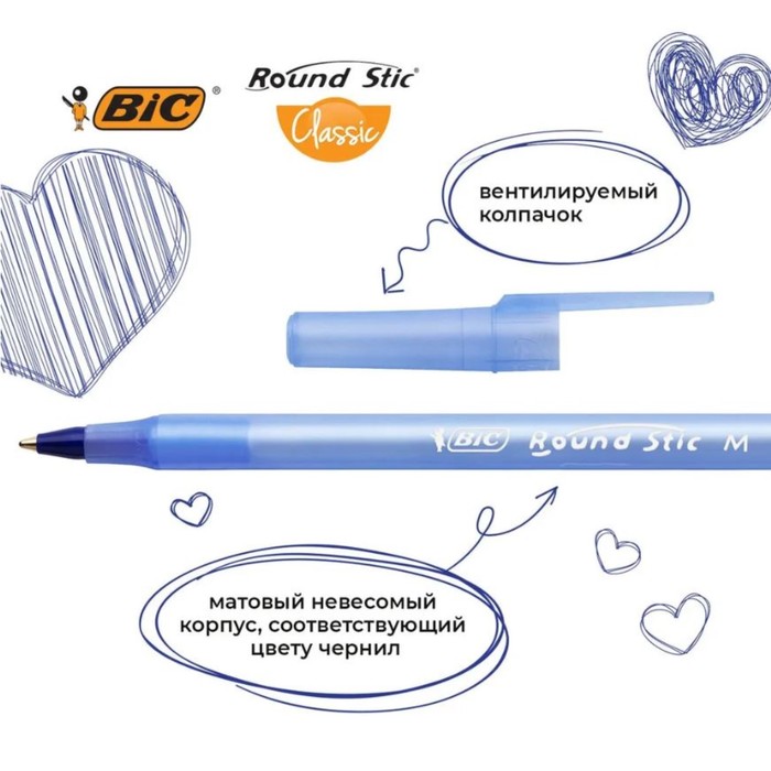 Шариковая ручка BIC Round Stic Classic просто создана для комфортного письма.